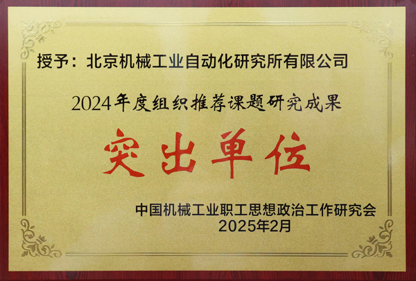 北自所榮獲了2024年度組織推薦課題研究成果突出單位,課題《科技型企業(yè)創(chuàng)新精神的傳承、發(fā)揚(yáng)和實(shí)踐研究》榮獲中國機(jī)械政研會(huì)一類課題研究成果。