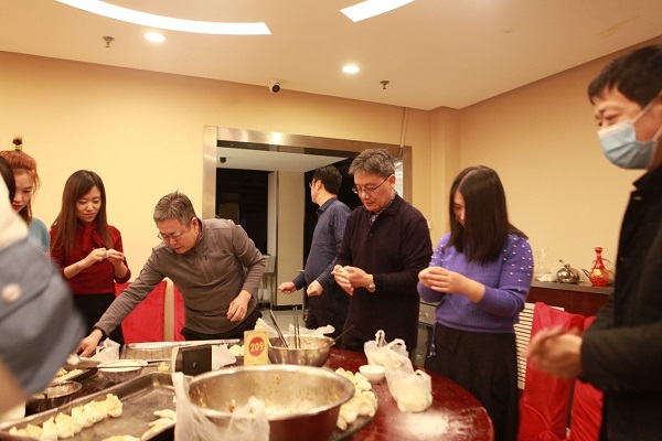 為進一步做好在京過年單身職工的服務保障工作,除夕下午,公司開展“情系職工、喜迎新春”慰問活動。公司黨委書記、董事長王振林,黨委委員、副總經理黃雪,黨委副書記、紀委書記、工會主席岳秀江等公司領導與在京過年單身職工及值班人員一同包水餃、貼福字、共進年夜飯。